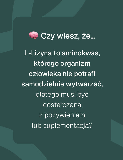 Tylko L-lizyna i otoczka kapsułki roślinnej – bez konserwantów, barwników, wypełniaczy i sztucznych dodatków.