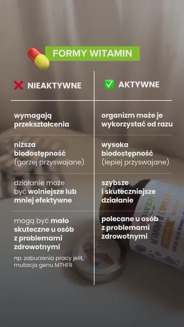 Cena jednostkowa zaWitamina B12 Complex+ Biowen to suplement dla osób, które odczuwają zmęczenie, problemy z koncentracją i spadki nastroju. Dzięki potrójnej formule witaminy B12 – MecobalActive®, HydroksyActive® i AdenoActive® – uzupełnionej o witaminę C i prebiotyk Inavea™, wspiera układ nerwowy, metabolizm energetyczny i odporność. To czysta, wegańska formuła bez glutenu i laktozy, odpowiednia także dla osób z mutacją MTHFR oraz trudnościami z wchłanianiem.